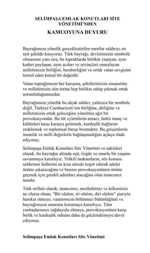 SELİMPAŞA EMLAK KONUTLARI SİTE YÖNETİMİ’NDEN