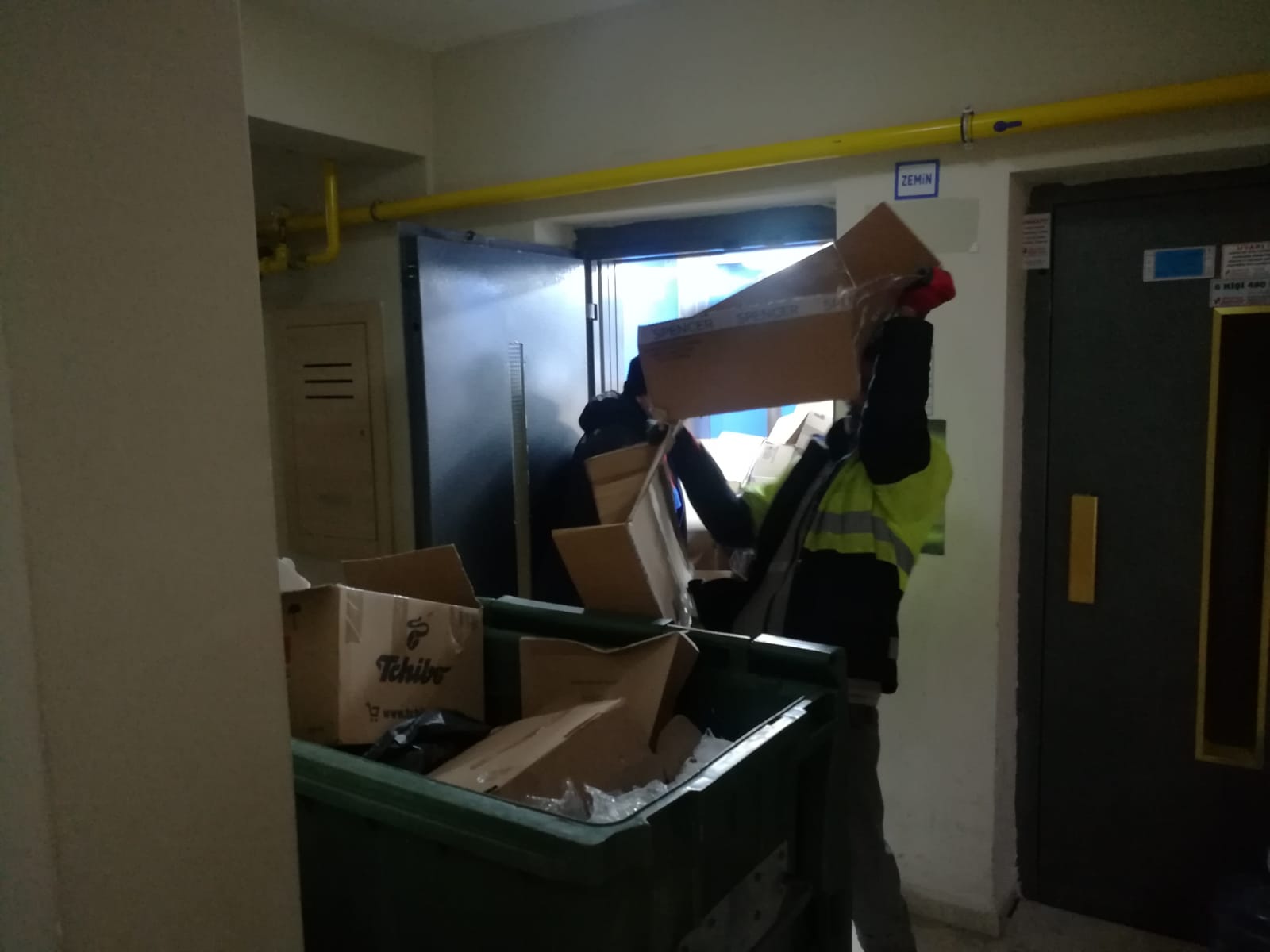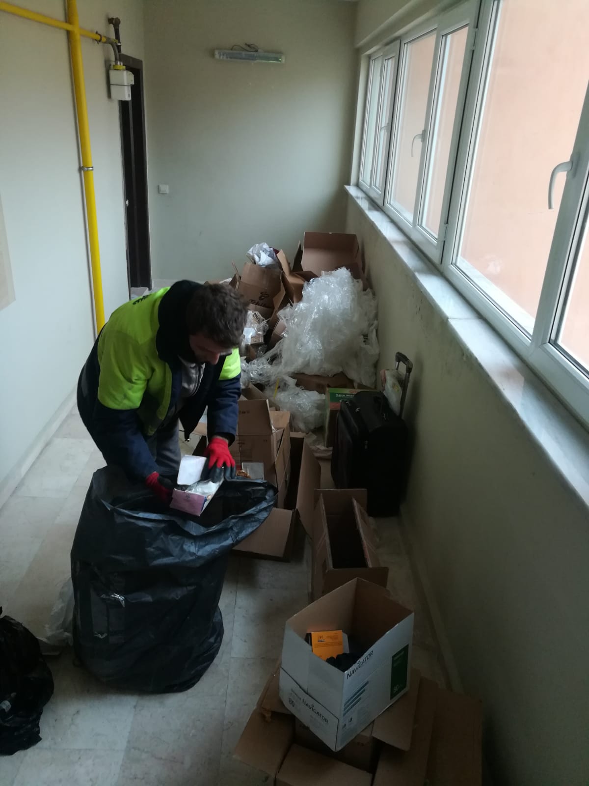 Koridorlardaki ve yangın merdivenindeki temizliği engelleyici tüm unsurlar kalıcı olarak depoya indirilerek çalışmalar sürdürülmeye devam etmektedir.